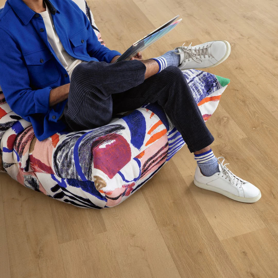 Quickstep Vinyl Bloom Elegant Oak Natural flooring, elegant oak finish brings a warm and inviting atmosphere to any room, seamlessly blending with a variety of decorative styles from classic to contemporary.